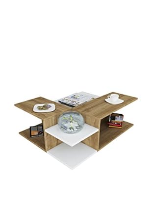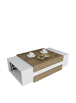 Dekorister Bücherregal Sementha weiß/walnuss 22×104,1×66,2cm -